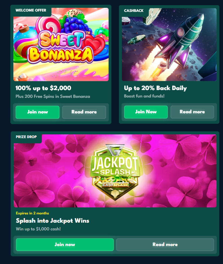 In addition to the Rocket Riches bonus money, the gamblers receive 200 free spins that can be used for Sweet Bonanza slots.