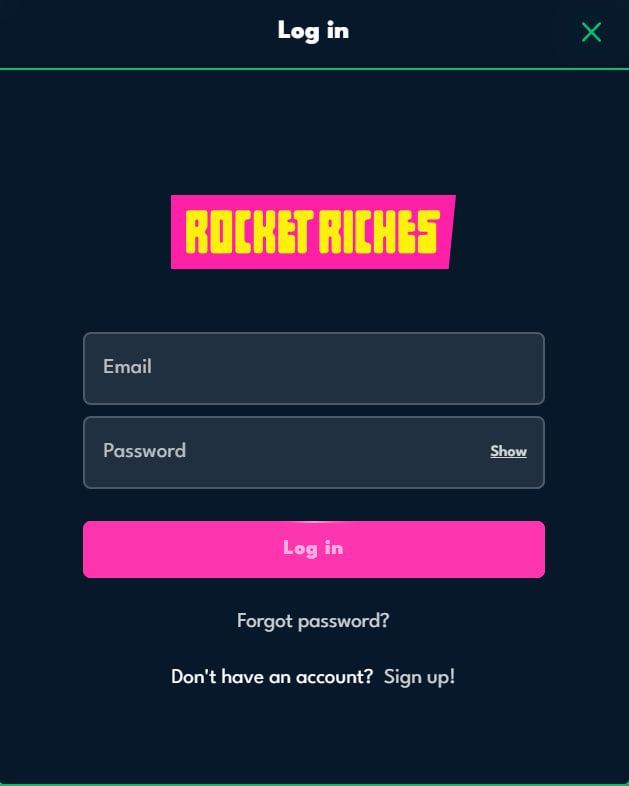 Sign-in process at Rocket Riches casino
